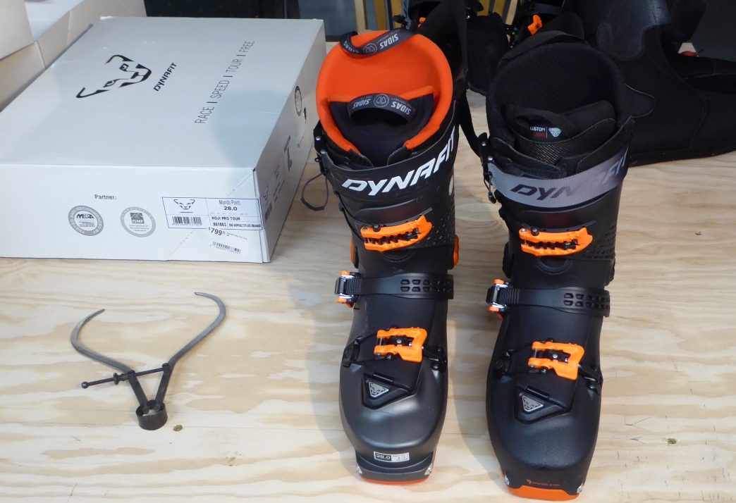 Hoji Free includes an additional cuff spoiler that’s said to increase forward lean to 17 degrees from the Hoji Pro 11 degrees. From my measurements, I think the increase is less but still different enough to yield a boot geometry that “feels more forward.” The spoiler can be removed, but doing so is not user friendly. It would require demolishing a pair of large steel rivets, then re-attaching the power strap. Note that some catalog text and online stores spec the forward lean out at “11/17,” thus making it appear to be adjustable. The Dynafit website, oddly enough, specs it out at 11 degrees in their list of specs, and calls it out at 17 degrees in the body copy, so clearly there is some flawed messaging going on somewhere with this. Adding to the confusion, both the Dynafit website and some etailers list the spoiler as a separate part. Perhaps they’re selling a North American version with the spoiler, and a European version without it? Or they’re selling it so you could install it on a Hoji Pro? The Dynafit website shows the Free _with_ the spoiler. Continued clarification will I hope be forthcoming. (I added this photo and caption after discussion in comments.)