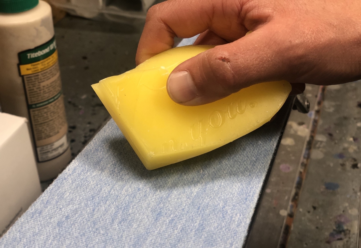 Crayoning the wax on your ski will work for a lap, but if you have the time to quickly melt the wax with an iron, it’ll last longer. Rub the wax against the grain for maximum penetration between the follicles and quickly run an iron on medium heat from skin tip to skin tail. Two or three quick passes will do it, but make sure you do not overheat the glue (see above for the risks of overheating glue).