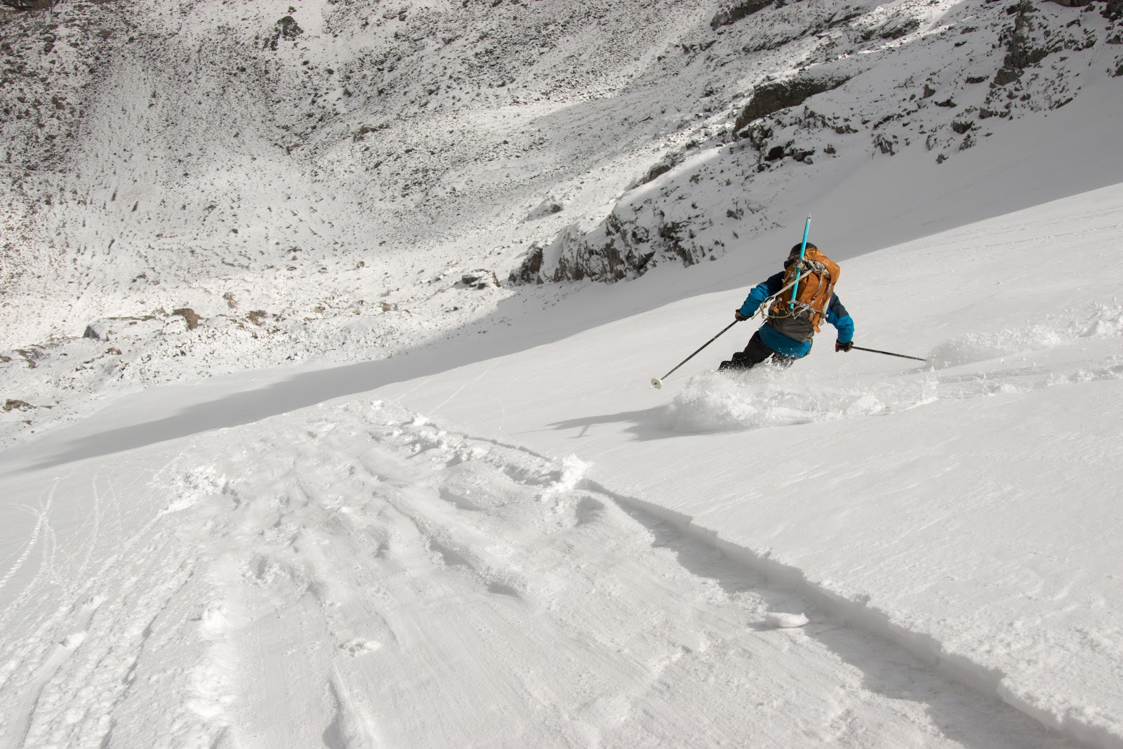 With early season skiing, there’s often not enough base for skinning, which means you can end up carrying skis for 99% of the outing. Colorado’s perennial snowfields provide a base to harvest the early snow but lie hidden in hard to reach nooks and crannies of the Rocky Mountains. A light setup capable of descending steep and variable terrain is necessary. Of course, climbing to the top is only half the battle, so it’s valuable that you also trust your setup on a 45-degree slope above a jagged boulder field.