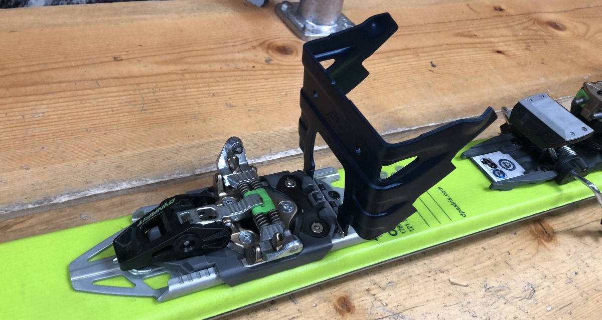 Like a boot crampon, a ski crampon gives you the extra edge in hard or icy conditions. They’re generally u-shaped metal pieces with teeth that attach to your binding and insert directly under your boot. Dynafit pioneered the slot behind the toe piece of the binding and like many other features of the tech binding, this has become standard as many other companies have followed suit. The binding attachment point is hinged so the crampon teeth can release from the snow when you lift your foot and bite into it when you step down.
