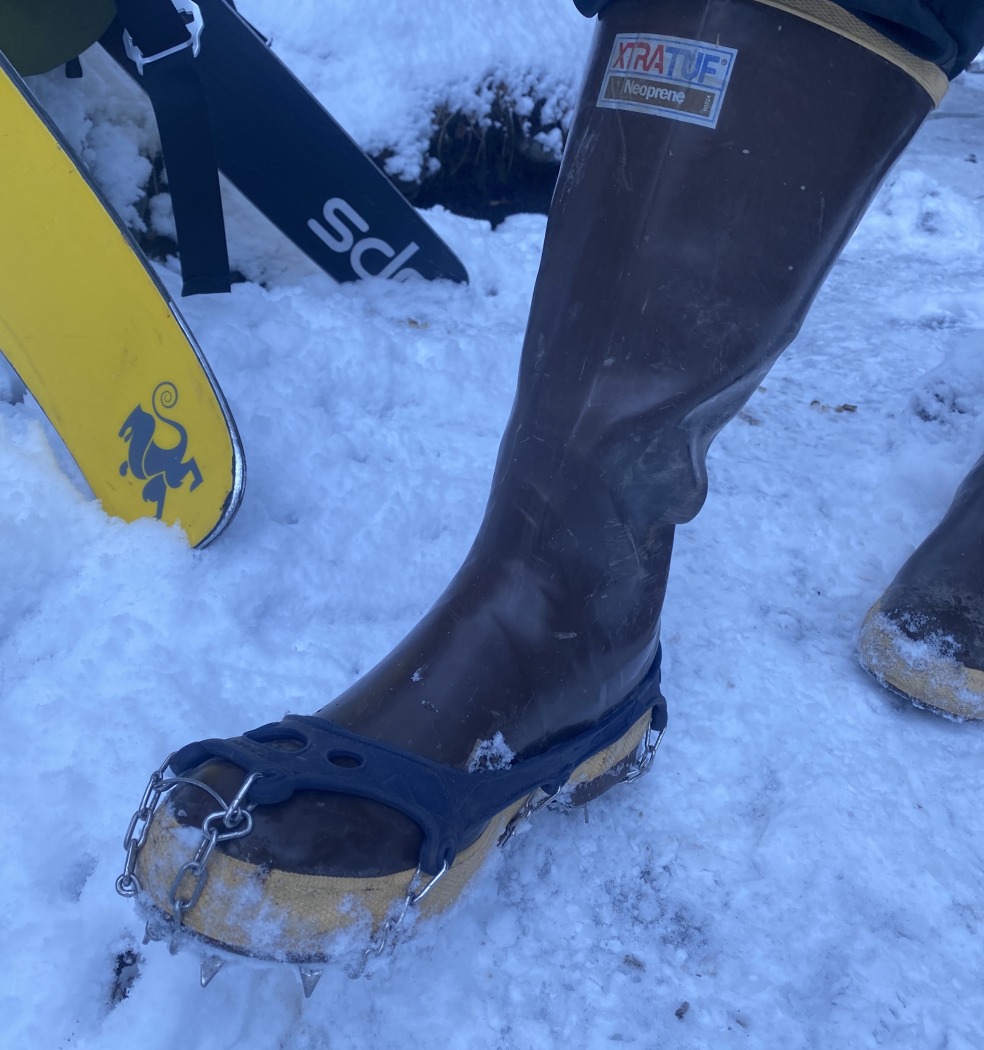 We were able to drive and park at trailhead without any shenanigans. Microspikes were helpful on the last part of our hike in. Louie was rocking what we decided was the best PNW approach footwear ever: Xtratufs with microspikes.