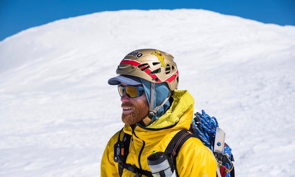 Hoods on helmets on hoods on hats. The ginger beard is a favorite springtime layering piece for sun protection. Layering is especially important on big exposed mountains where the climate can change many times like here, leaving the summit of Mt Rainier, WA. photo @alwaysadventuring.