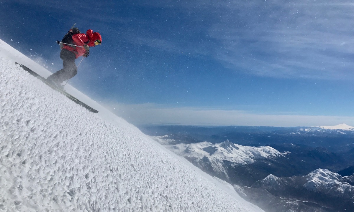 Doug utilizing flip over mitt of the CAMP G Comp Warm, or Mickey Mouse gloves as he calls them, on Volcan Villarica, Chile.