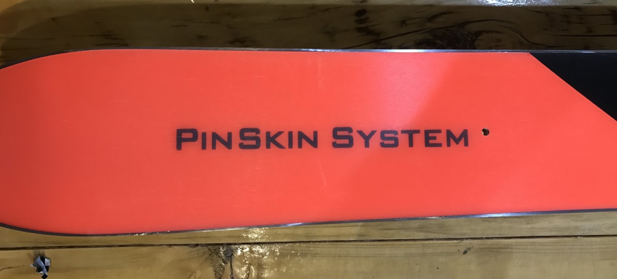 The PinSkin System will allow skiers to use eliminate tail clips by using a race skin with a pin that gets inserted in this hole. We didn’t get to test out the system, yet.