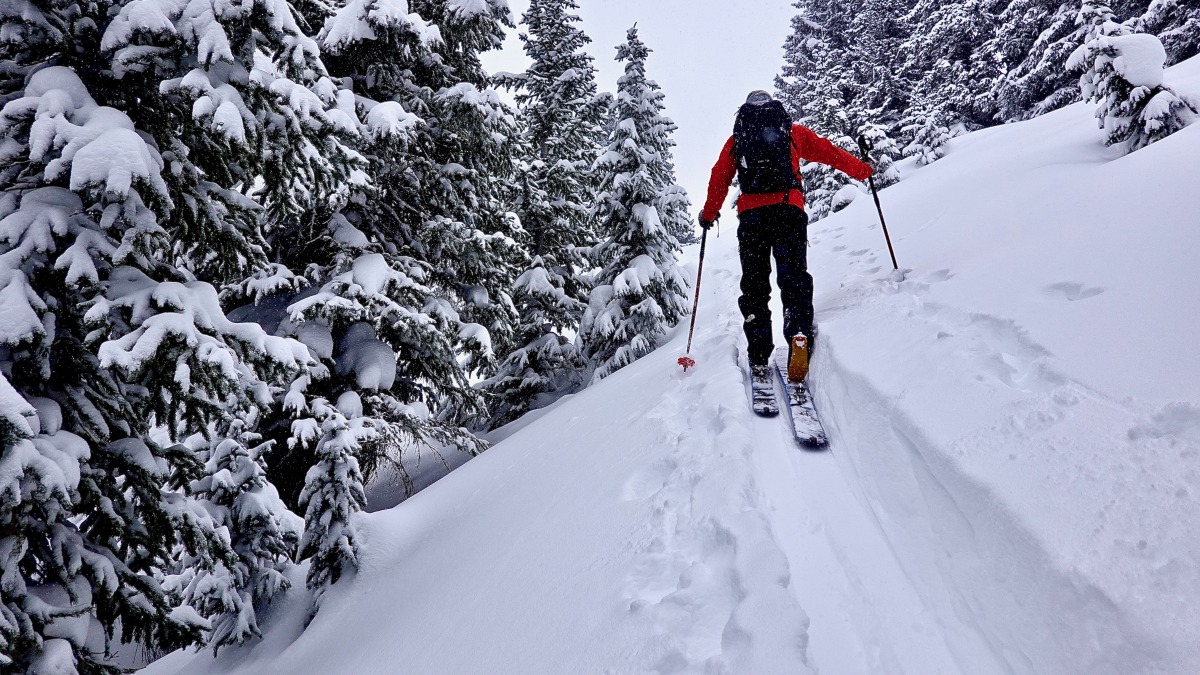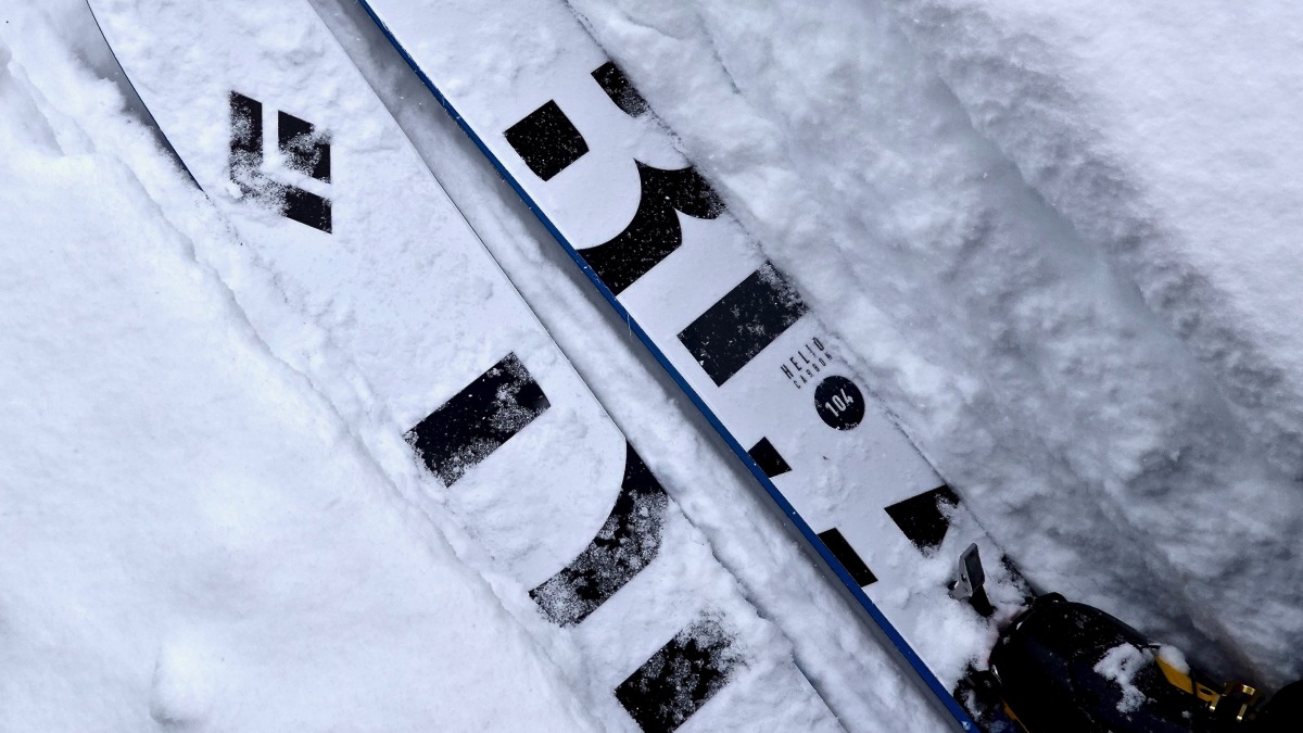 Powering the Helio 104s hard while treating the treetops as lazy backcountry slalom gates. Enough pop in these carbon planks to rip a short radius turn and come all the way up from the knee deep snow in the transition.