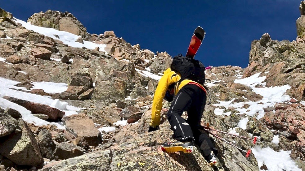 La Sportiva’s in-house Grip-Guard soles getting the job done on this scramble. Color coordination an added bonus. The sun made for a crampon free ascent on this one.