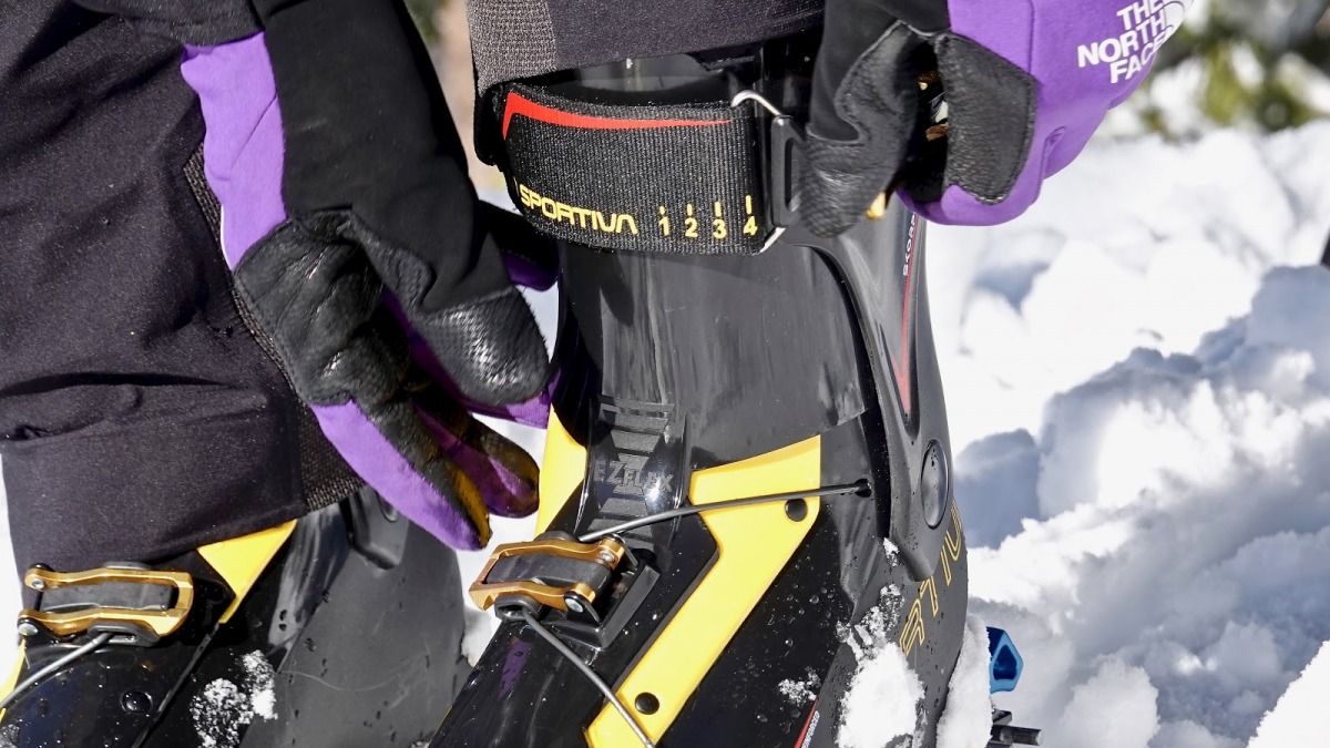 The Skorpius CR sits at the high end of its weight class, and for good reasons — skiing performance and durability. The boot closure is entirely plastic (carbon reinforced grilamid), not the cloth gaiter that wraps across the shin of others. These designs ski brilliantly considering there is nothing in front of your lower shin, but they put the nail in the coffin for any hopes of a progressive feeling flex. Designers often use BOAs and/or cord systems in this class. I have found this sacrifices tightening leverage and gives you more small things to break. Buckles and thick cables, albeit heavier, simply work better with the amount of forces we are putting into ski boots.