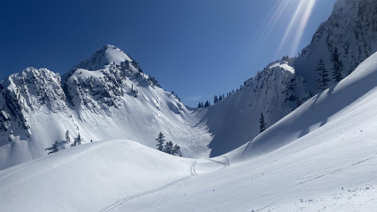 The Chair Peak Circumnavigation is one of the classic ski tours in the Snoqulamie Pass area. There are two ways to do the tour: counterclockwise, heading up towards East Shoulder on Chair then skiing to Snow Lake, or clockwise, skinning up to Bryant Col and skiing down towards Melakwa Lake. The route requires you to travel up and down avalanche terrain no matter which way you decide to go, so safe avalanche conditions are a must. Warming is also something to consider if you are tackling this tour later in the season. We were blessed with a moderate danger bluebird day in early March providing us with nearly perfect conditions.