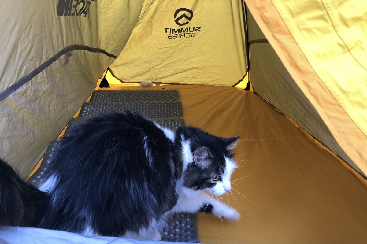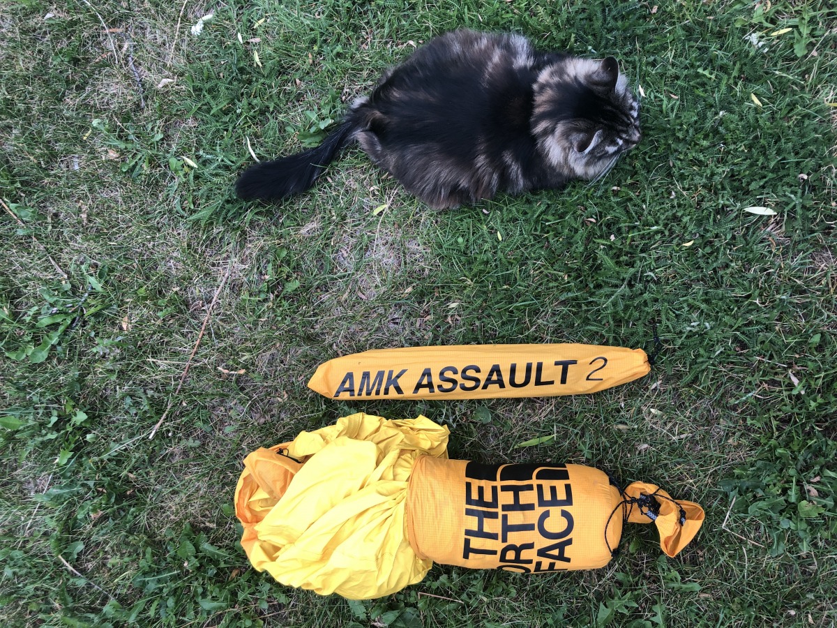 The tent packs down quite small as illustrated by the cat scale, though I found it impossible to stuff the tent back in the stuff sack once I had unstuffed it.