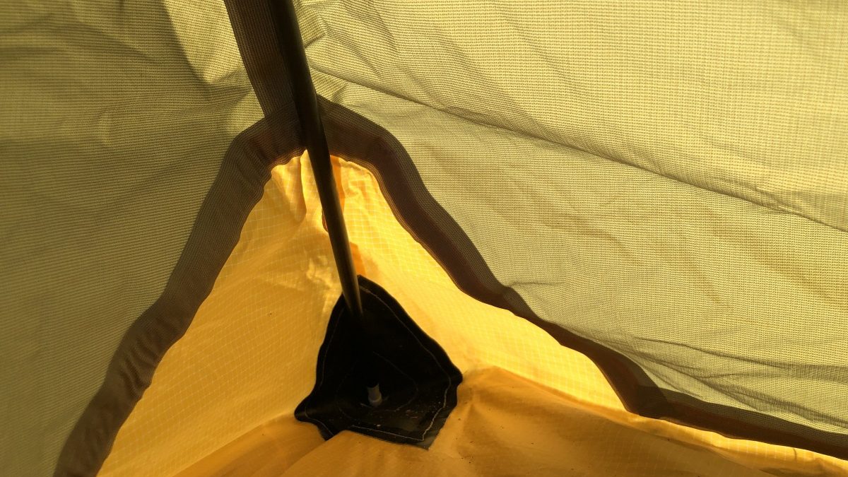 Half way through the trip, on a moderately windy day, with gusts around 20-25mph, I set up the tent and managed to snap a pole. I had completed the internal pitch of the tent, and was working on guy-lining out the rest. I didn’t observe the break. I think that I missed fastening one of the thin, interior velcro straps, and when the wind hit the un-guyed tent, the pole had more room to slide out and bend, and snapped as a consequence. The jagged, snapped pole-end was exposed to the fabric but it did not tear or do any visible damage. Thus, again, the fabric earns my respect. The poles, however, are a different story. Personally, I’d swap out the c-f poles for some heavier, but burlier versions and sleep better. I will add however, that even with one pole at half mast, the tent was still totally habitable.