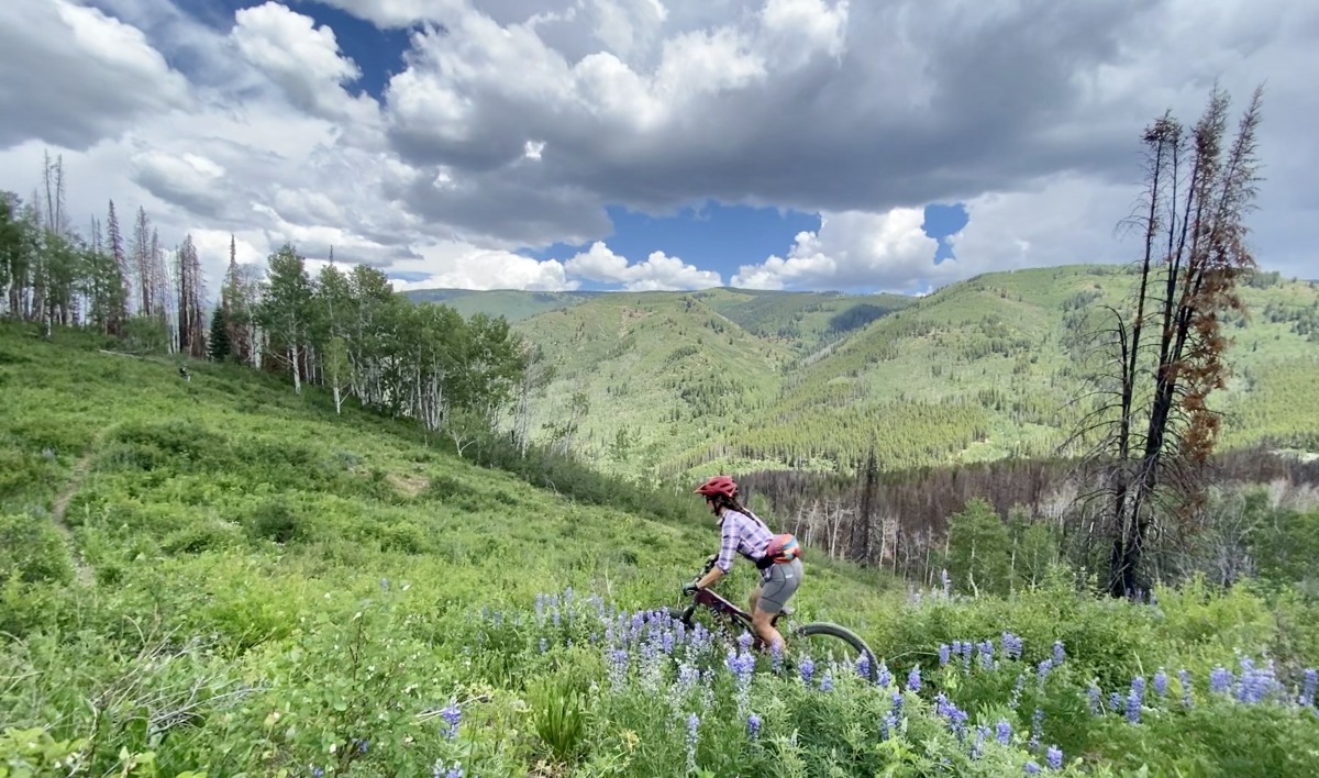 Trees fly by. The scraping branches remind me that I am just inches away from a nasty tumble as I check my speed and rein control back in. With my balance under me once more, the adrenaline subsides and my other senses return. I catch the sharp smell of freshly exposed spring pine. My downward momentum slows to a trickle and I transition into the slothy plodding of another hill climb. I move slowly through subalpine fir trees, glimpsing the tops peaks I’d rather be standing on. But it’s June, and despite that ribbons of snow still cling to the peaks, I’ve traded carbon sticks and slippers for the carbon bike between my knees.
