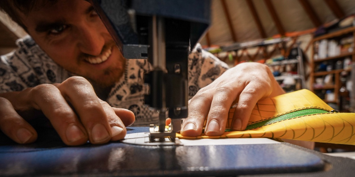 It is a long and methodical process to work with high performance fabrics. Include the custom requests and personalized colors – Gavin has his hands full with pack orders. Photo: Morgan Mcglashon