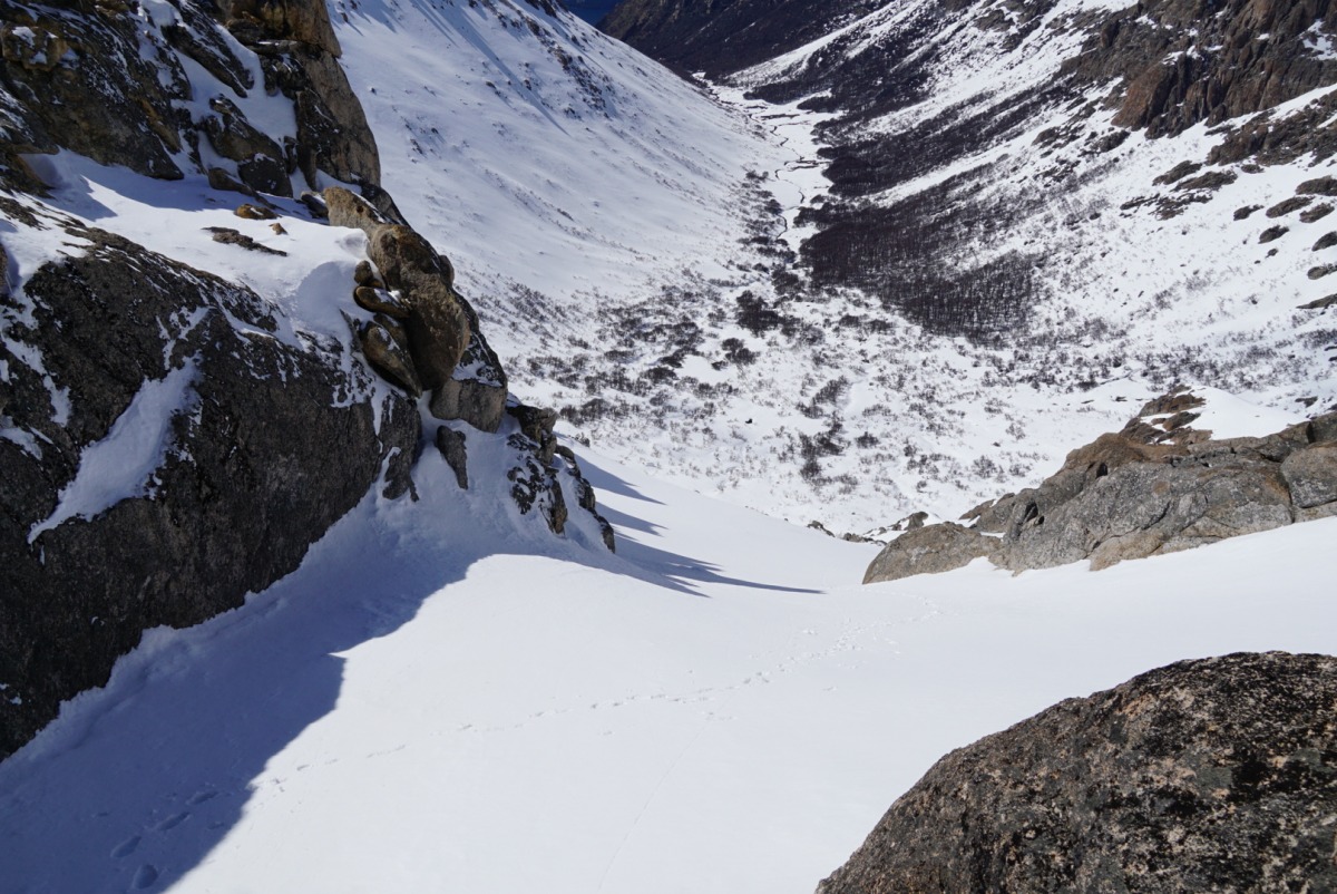 The following day, I skinned up the resort again (after a luxurious ride in the gondola to mid-mountain) and made the journey into Refugio Frey, an old Euro-style mountain hut surrounded by mind-bending terrain. Read my trip report from last August. In Frey I was welcomed by the cloudless sky that followed the big storm. Due to the intense spring sun, the north faces were already crusty, but the protected couloirs and south faces skied deliciously. The weather remained warm and windy throughout the following two days.