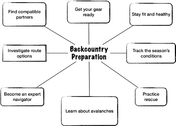 Trip planning is merely a method or algorithm by which you anticipate problems so that you can make better, safer decisions in a challenging environment. You then debrief to gain insights from your process and improve (more on the debrief in a subsequent chapter). Keep in mind, all this proper planning will also set you up for better turns! Employing a repeatable process is your best strategy for a long, safer career in the backcountry . . . and getting the goods. This chapter (more accurately, this book) is one blueprint for the process—drawing on guide training and the avalanche industry in the United States and Canada. It is by no means the only one. It is one version but, keep in mind, a version time-tested by mountain guides and avalanche professionals over decades.