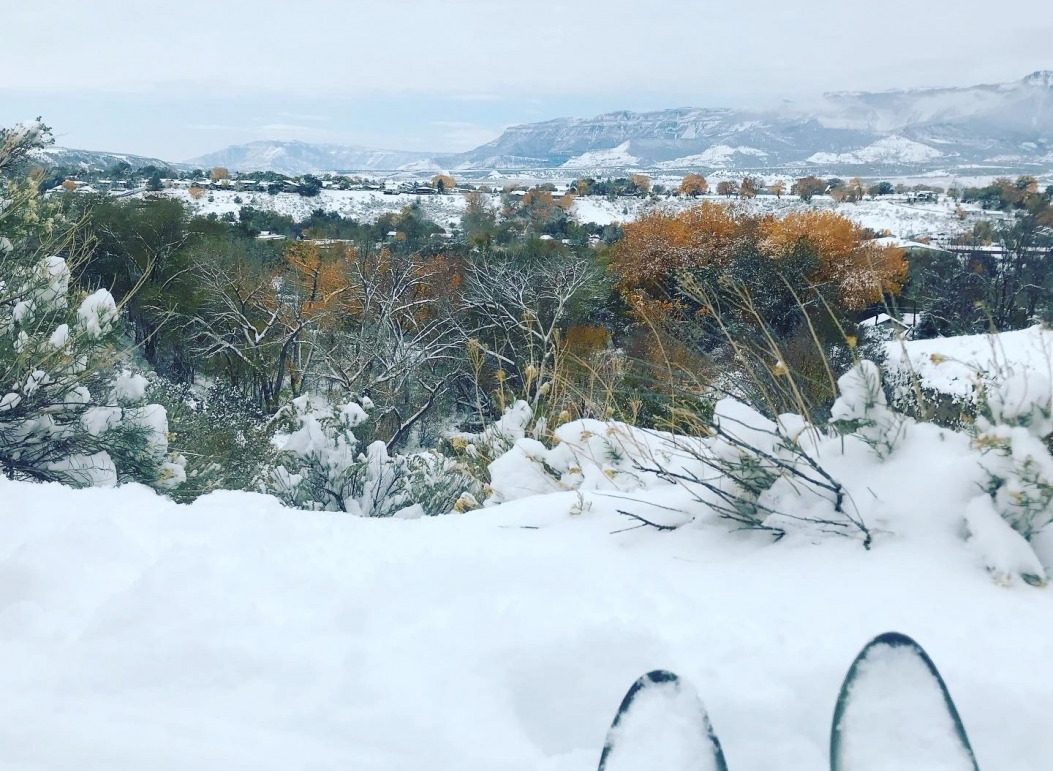 Snow in October is nothing new, but here on the valley floor of the Colorado River, it is usually only enough to leave a few spears of yellowed grass sticking through. This storm would have rivaled any of last seasons “big dumps,” leaving behind a blanket thick enough to morph rocks and shrubs from identifiable features to abstract outlines. I know it is not enough to fill in the land mines of downed timber of my usual low-angle haunts, but the the cheatgrass and sagebrush hill behind my house has never looked so inviting.