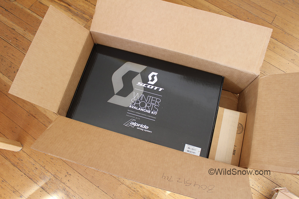 The fancy box in Scott black-on-black branding colors. The smaller box to right is an extra set of cartridges for our testing sample.
