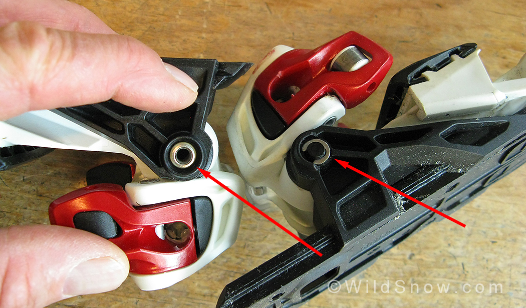 I added another Marker Tour photo, third down, showing beefed plastic around pivot axle. After extensive testing, I’m convinced nearly all problems with this binding last season were caused by pivot wear. So the new one, with thicker plastic as well as teflon bushing, should show much better durability. It sure skis downhill good, so thanks Marker for doing in-line changes to improve durability.